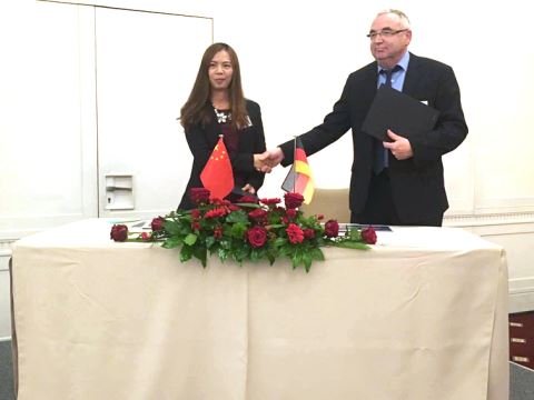 王妍與德企簽訂合作協議。
